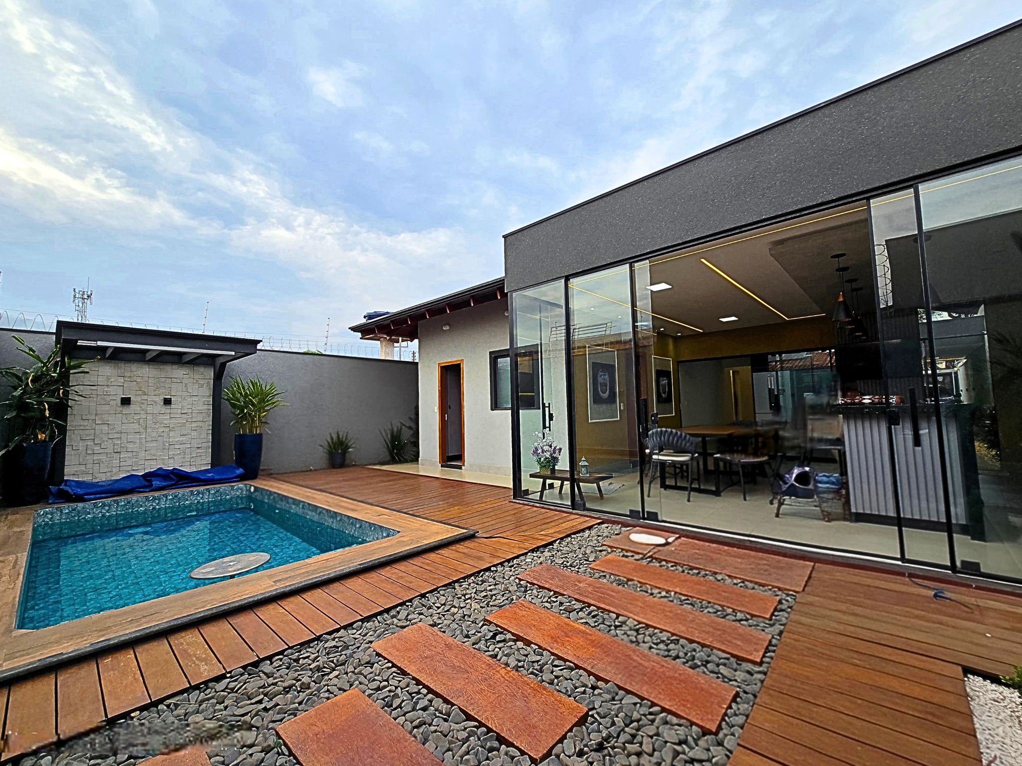 • Piscina aquecida com prainha e cascata